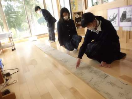 子ども達は鳥獣戯画のレプリカの絵巻物をウキウキしながら鑑賞していました。