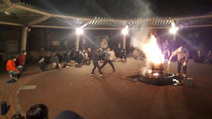 お待ちかねのキャンプファイヤーが始まりました。4年生が準備してくれたレクリエーションに、みんな大喜びです。とても和やかな場となっています。