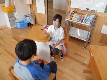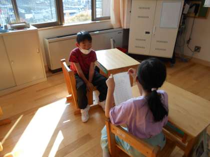 2年生は,かけ算の学習を頑張っています。帯学習では,隣同士で九九の計算に取り組んでおり,3分間でどれだけ正確にたくさん言えるのかに挑戦しています。