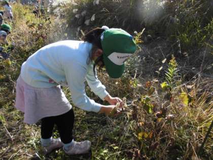2年生の生徒たちは,採れた綿に「わあ,ふわふわ。」ととても喜んでいる様子でした。