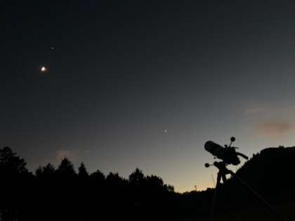 右下に金星,左上に木星,その下に月,そして金星と木星のちょうど真ん中あたりで土星を観測することができました。明日の天気予報も晴れマーク。京北の星空をみなさんと観測できることを楽しみにしています。