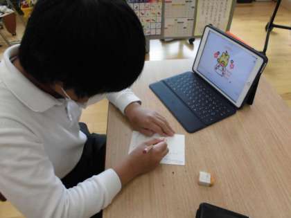 昨日の書写の時間に,初めて年賀状を書きました。