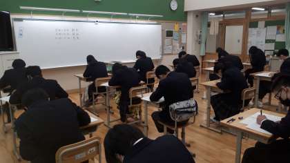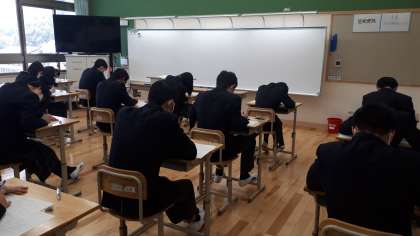 9年生にとって,中学校で最後の定期テストが始まりました。生徒達は,高校受検(験)を意識してか,いつも以上に集中して解答する様子がうかがえました。日頃の学習成果が発揮できるように,今日明日と家庭での時間をうまく使えるようにしましょう。
