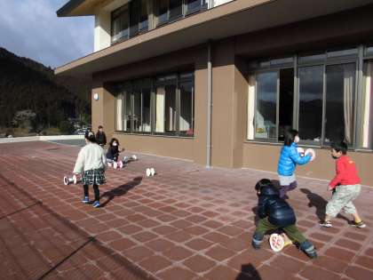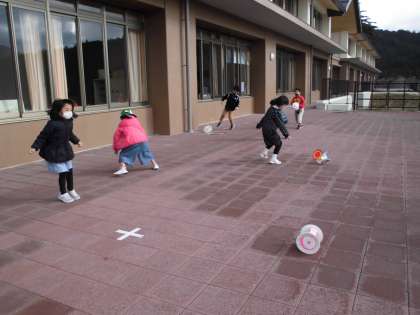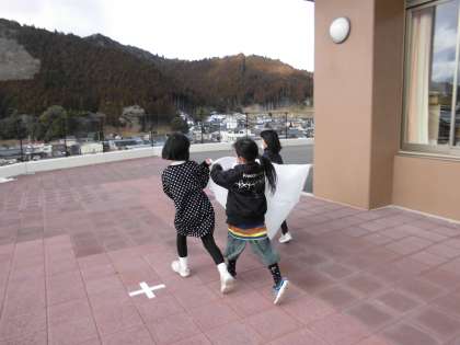 図工でつくった「かみざら コロコロ」を使って,冬の風を感じて遊びました。