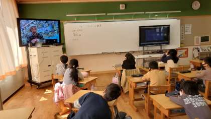この日は,漁協組合の方とオンラインでアマゴについてのお話をしていただきました。