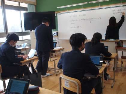 8年生は,沖縄修学旅行に向けた平和学習の発表会を行いました。太平洋戦争でさまざまな被害を受けた沖縄の歴史を学習したうえで,今を生きる私たちに何ができるのかを考えさせる発表会になりました。なお学習内容は,2階中央フロアーにてポスター展示の形式でも行っています。