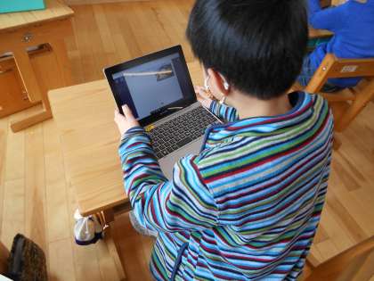 京北ふるさと未来科の学習では,学校の周りのお店や施設について調べています。先日,子どもたちが考えた質問に,地域のお店や施設の方に答えていただきました。今日は,答えていただいた内容をグループで読み返しました。その後は,特に伝えたいことをロイロノートにメモをして,次回の学習から作るポスターの準備をしました。子どもたちは,質問の答えをとても楽しみにしていたようで,答えていただいた用紙をじっくりと読んでいました。