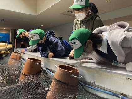 カキいかだを観察しています。 おいしそう!