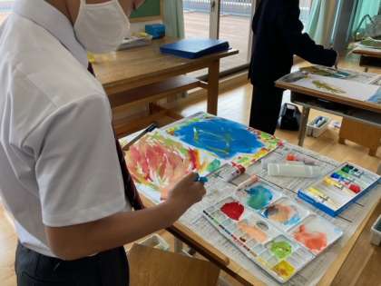 5年生になってはじめて絵の具を使って図工を行いました。