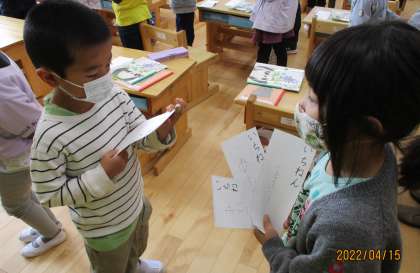 名前を書いたカードを自分の好きな遊びや食べ物と一緒に紹介しました。