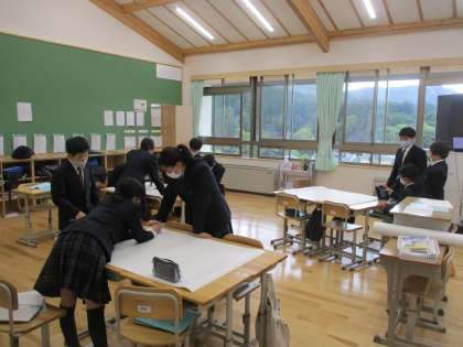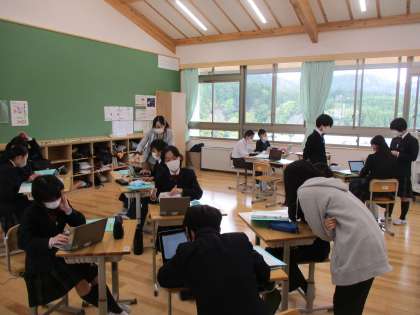 各班協力して,パワーポイントや模造紙にまとめていく作業に入っています。