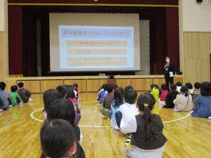1STステージ朝会では,校長先生から「日本国憲法」について話をしていただきました。