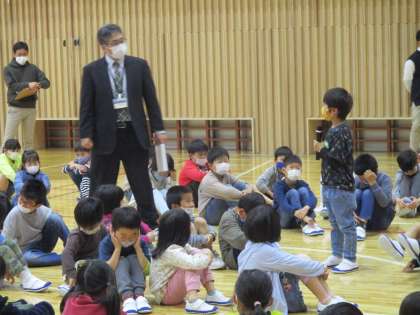 お兄さんやお姉さんがいる中でも,1年生からも校長先生からの質問に答えようと手が挙がり,発表していました。