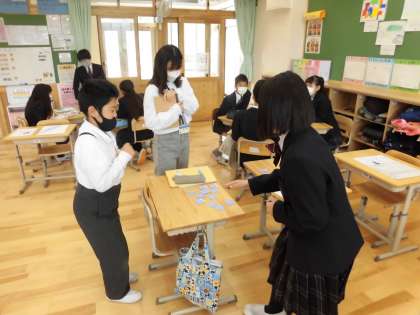 この単元では,季節や行事の言い方などを学習しています。今回は,季節と行事のカードを使って,カードマッチングゲームをしました。ゲームを通して,子どもたちは少しずつ季節や行事の言い方に慣れることができました。単元のゴールは,「日本の行事やそこでできることを紹介することができる。」です。それを達成するために,これからも学習していきます。