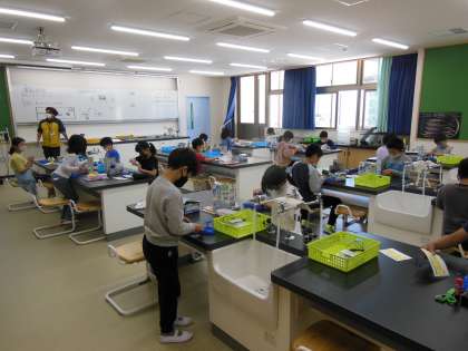 理科の学習では,電池とモーターを使った実験をしています。子どもたちはプロペラのついたモーターを電池につなぎ,モーターの特性や電池のはたらきについて学習をしています。初めてモーターを使ったという子も多く,意欲的に実験に取り組んでいる姿が見られました。