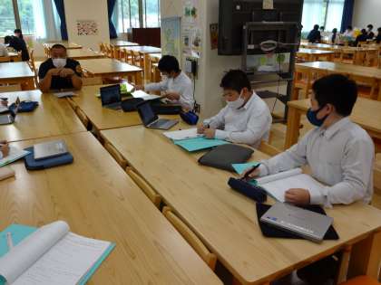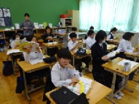 インターネットや本を使ってもなかなか知りたいことがでてこないものがあったので,京北の林業に携わっている方々をゲストティーチャーとしてお呼びし,インタビューをしました。最初は緊張した面持ちでしたが,今まで疑問に思っていたことに丁寧に答えてくださったので,緊張もほぐれ,だんだんと様々な質問が出てきていました。