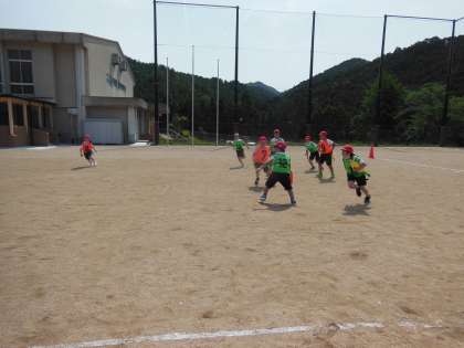 第2回目は,タグラグビーをしました。初めてする競技のため,ルールになれるのに時間はかかりましたが,2試合目には,ルールにもなれてタグラグビーを楽しんでいる様子が見られました。