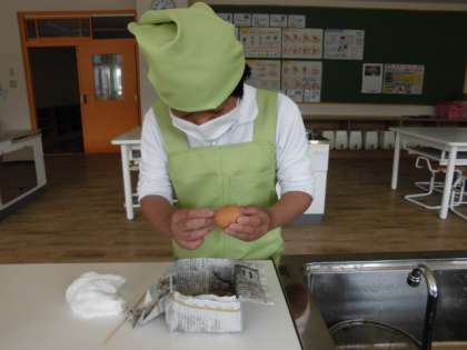 6年生の生徒は家庭科で,昨年度にできなかったゆで野菜とゆで卵の調理をしました。