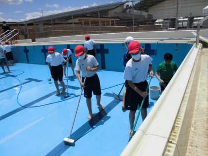 これからみんなが気持ちよくプール学習が進められるよう,一人が一人が一生懸命汚れをこすっていました。