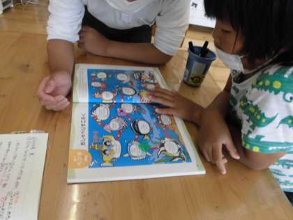 1回終わった後,「もう1回したい」のリクエストに応えて2回目もしました。2回目に同じマスに止まった時には,1回目と違う答えを話していました。