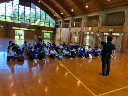 入所式が終わり,プレイホールに移動しました。プレイホールでは,各グループに分かれてお互いがより仲良くなるため7年生が考えたゲームを楽しんでいます。