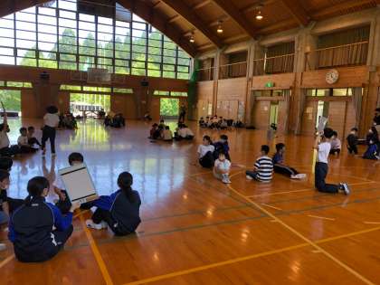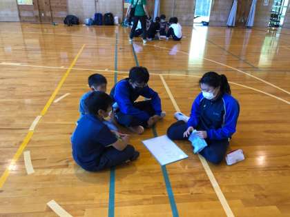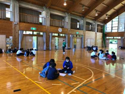これから一緒に活動する7年生と意思疎通ゲームで仲を深めています。