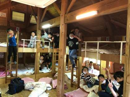 冒険の森での活動も無事に終わり,各宿泊棟に移動して寝る準備をしています。