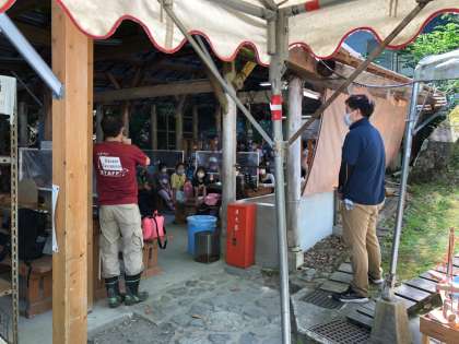 2日目の活動「火おこし」が始りました。まず,花背山の家の先生からどのように火を起こすかを説明を受けました。