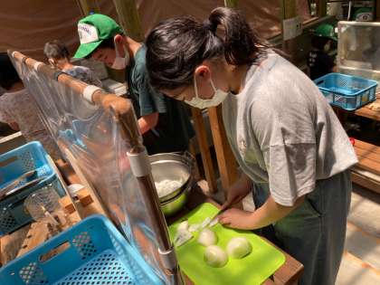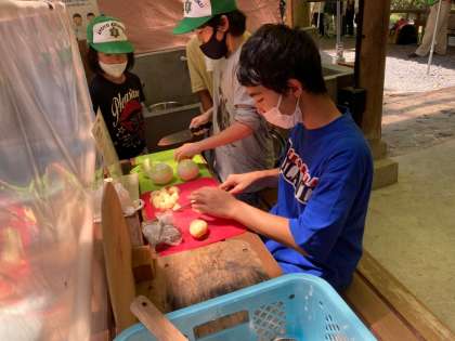 調理係さんです。 上手に包丁を使い、具材を切ることができています。