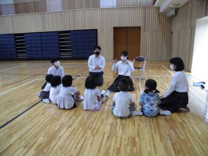 今日は9年2組の家庭科で,1年生との交流学習に取り組みました。家庭科係が工夫をして,楽しく始めの会をやってくれました。その楽しいふんいきを9年2組の全員が共有し,笑顔と低い姿勢を意識して手遊びや読み聞かせに取り組みました。1年生も2回目の交流になるので,距離も近くなり,とても仲良く,話もはずんでいました。