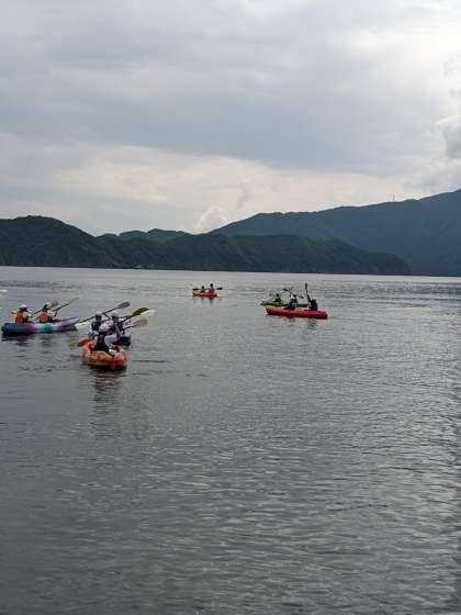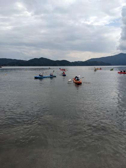 息を合わせてオ−ルを漕ぎます。がんばれ!