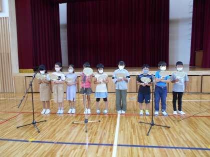 今日は、丹波音頭の練習の最終回でした。歌と音頭の2グループに分かれ、元気よく歌いました。丹波音頭保存会の方にも全部で6回来ていただき、上手に歌えるようになりました。