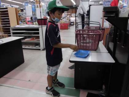 昨日は近くのスーパーに買い物に行きました。自分の買うものを確認し、スーパーの中でどこにあるのかを探しました。そして、算数で学習したように、100円玉を何枚出せばよいのか考えて、お金を払いおつりとレシートをもらいました。