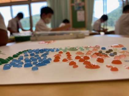水の色を変えたり、水の形を変えてきれいな見え方を探しました。