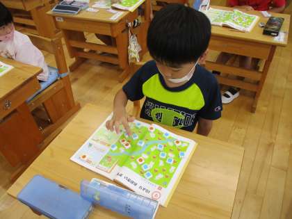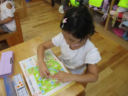 数図ブロックを使って「10と3で13」とこれまでの10までの数の学習を生かしていました。
