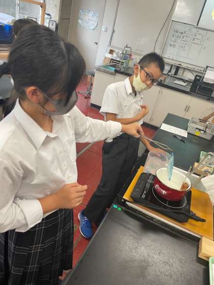 温めたり、冷ましたりしながら水と比べながらXの正体を考えています。