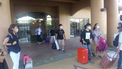 ホテルを出発しました。 今日はまず琴平でうどん作り体験を行います。