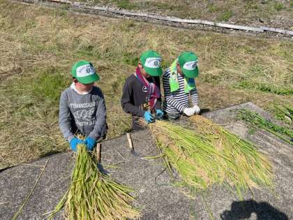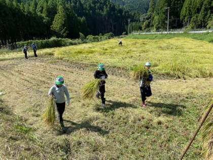 5月の田植えに引き続き、JAの方々,農家組合の方々のご協力いただき,稲刈り体験を行いました。