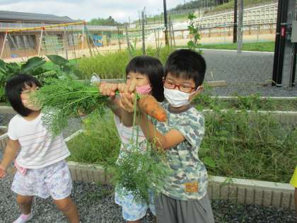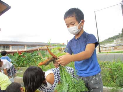 今週にやってくるウサギとの触れ合いを前に春に植えたニンジンの収穫をしました。