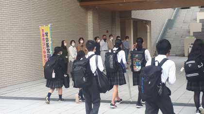 本日、学校運営協議会はぐくみ部会の皆さま、PTA本部役員・生活委員の皆さまがバスロータリーと大階段上のピロティに分かれ、あいさつ運動を実施されました。生徒達は少し恥ずかしそうにしながらも、元気な声であいさつを交わしていました。朝から爽やかなあいさつは、本当に気持ちがいいものです。あいさつ運動に参加いただいた皆さま、早朝よりありがとうございました。