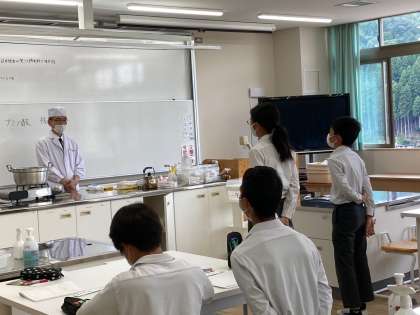 京都の老舗旅館「山ばな平八茶屋」の方をお招きし、日本の「だし」についての授業をしていただきました。伝統として和食のだしの「うまみ」のお話や「食とは何か」など深いお話をしていただきました。だしの飲み比べやおいしいお吸い物も試食しました。