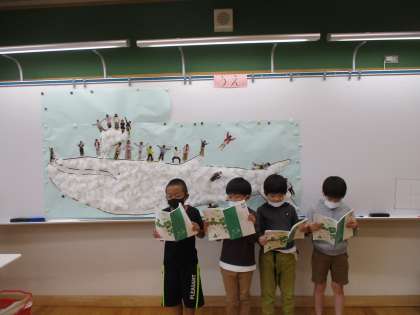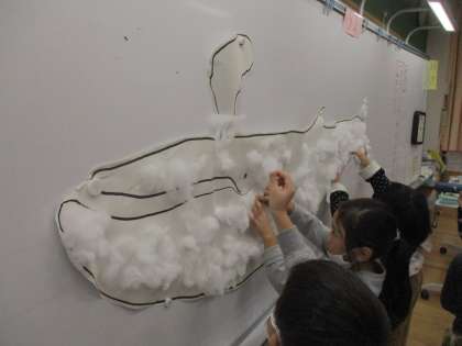 国語科でおもいうかべながら「くじらぐも」を読んでいます。