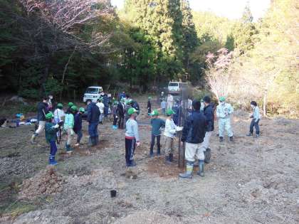 今回の体験で、大きなシャベルで穴を掘ったりした子もいたようで、普段できない体験に、子どもたちは生き生きと活動をしていました。京都府農林水産技術センターの協力もありヒノキの苗も植林することができました。