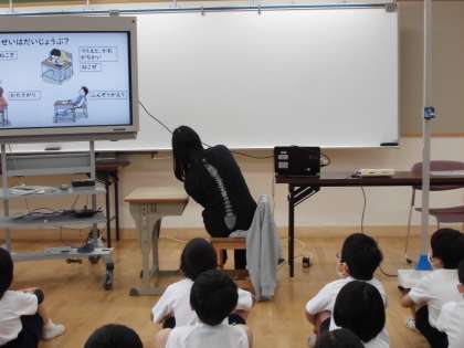 また、悪い姿勢でいると、けがの原因となったり、目や体調が悪くなることにつながったりすることを学習しましたので、ご家庭でも、正しい姿勢で過ごしているか見てあげてください。