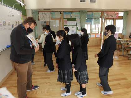 この単元では、『小学校生活の思い出に残る行事を発表する』をゴールとして、学習を進めています。様々な行事の言い方を知り、それを伝え合うことができるために、「どちらが先か」ゲームをしました。子どもたちは、ゲームを楽しく行っていく中で、様々な行事を英語で言えるようになってきました。
