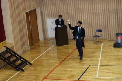 本日、立志の会講演会を実施しました。周山中学校卒業生で北海道日本ハムファイターズの北山亘基様から、『私の道』を演題にご講演いただきました。小中学生の時期には、夢中になれることや、やるべきことを諦めず継続して取り組むことの大切さなどをお話しいただきました。また講演終盤には、生徒代表とキャッチボールもしていただきました。軽く投げておられるにも関わらず、ボールのスピードに生徒たちは驚いていました。お忙しい中、後輩たちのために、ご講演いただき本当にありがとうございました。来シーズン以降もご活躍を期待しています。