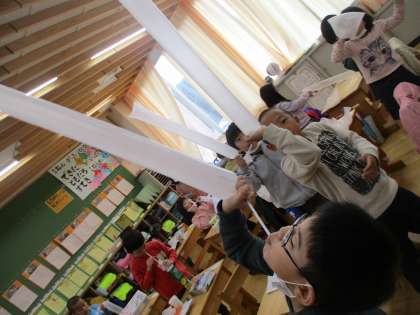 「○○の動きに似ているなあ。」や「箱から飛び出すところが面白いね。」とイメージが膨らんだ様子です。