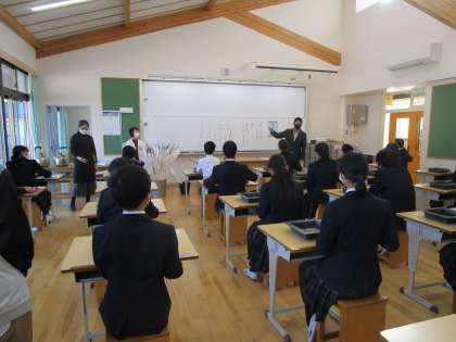 本日7年生が「伝統文化の良さを知り、いけばなの楽しさを通じて豊かな感性を磨くこと」を目的に華道体験を行いました。都未生流の講師の先生より、基本的な生け方のお話を聞いた後、生徒たちは自分の感性を大切にしながら、いけばなに取り組みました。初めての華道体験で最初は少し緊張している様子も見られましたが、徐々に慣れ個性ある作品に仕上がりました。