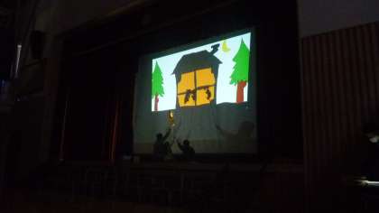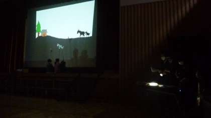 3組と各学年のお助け隊の総勢10名で「ブレーメンの音楽隊」を影絵で演じました。放課後の限られた時間の中で練習をしてきた仲間たち全員で演じきれたことが何よりもよかったことだと思います。