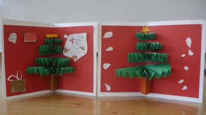 ひだをたくさん折ったり両面テープで貼ったりすることが難しいようでしたが、最後はステキなカードになって、嬉しいようでした。